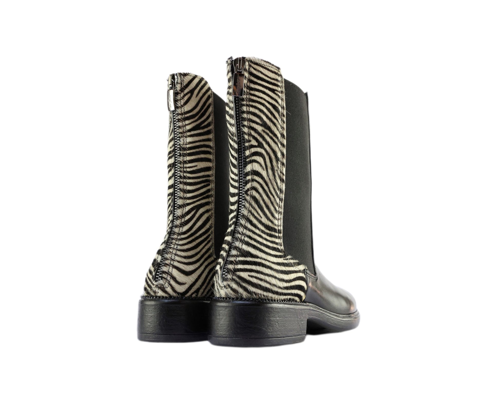 Material: Sheepskin + Ponyskin Lining: Leather Heel: 3.5 cm Height: 25.5 cm Color: Black+Zebra Processing: Glued Bottom: Rubber