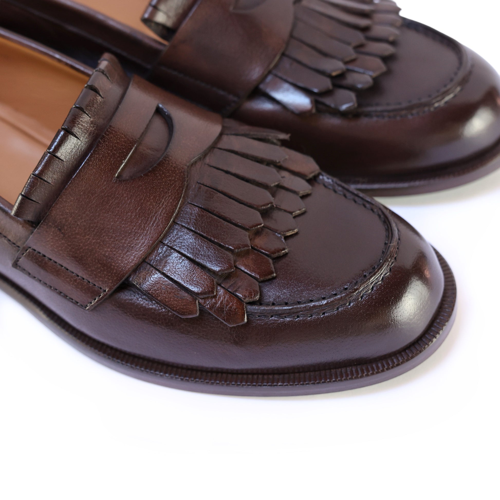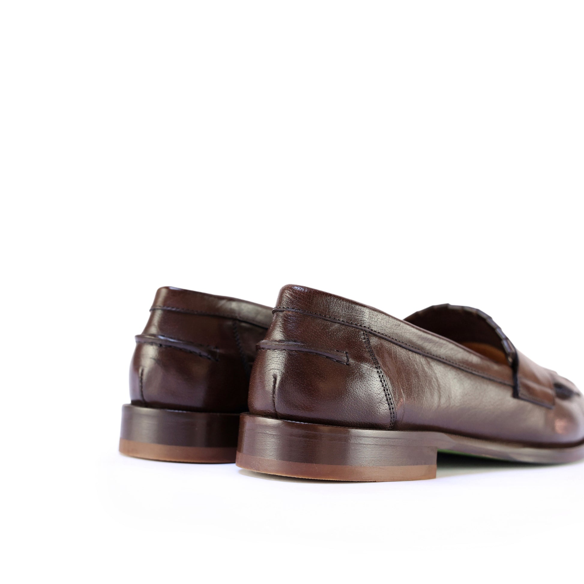 Mocassino in pelle artigianale selezionata 100% Made in Italy con impunture e traversina frontale. Tacco basso. Lavorazione a sacchetto per una morbidezza unica ed un comfort assoluto.