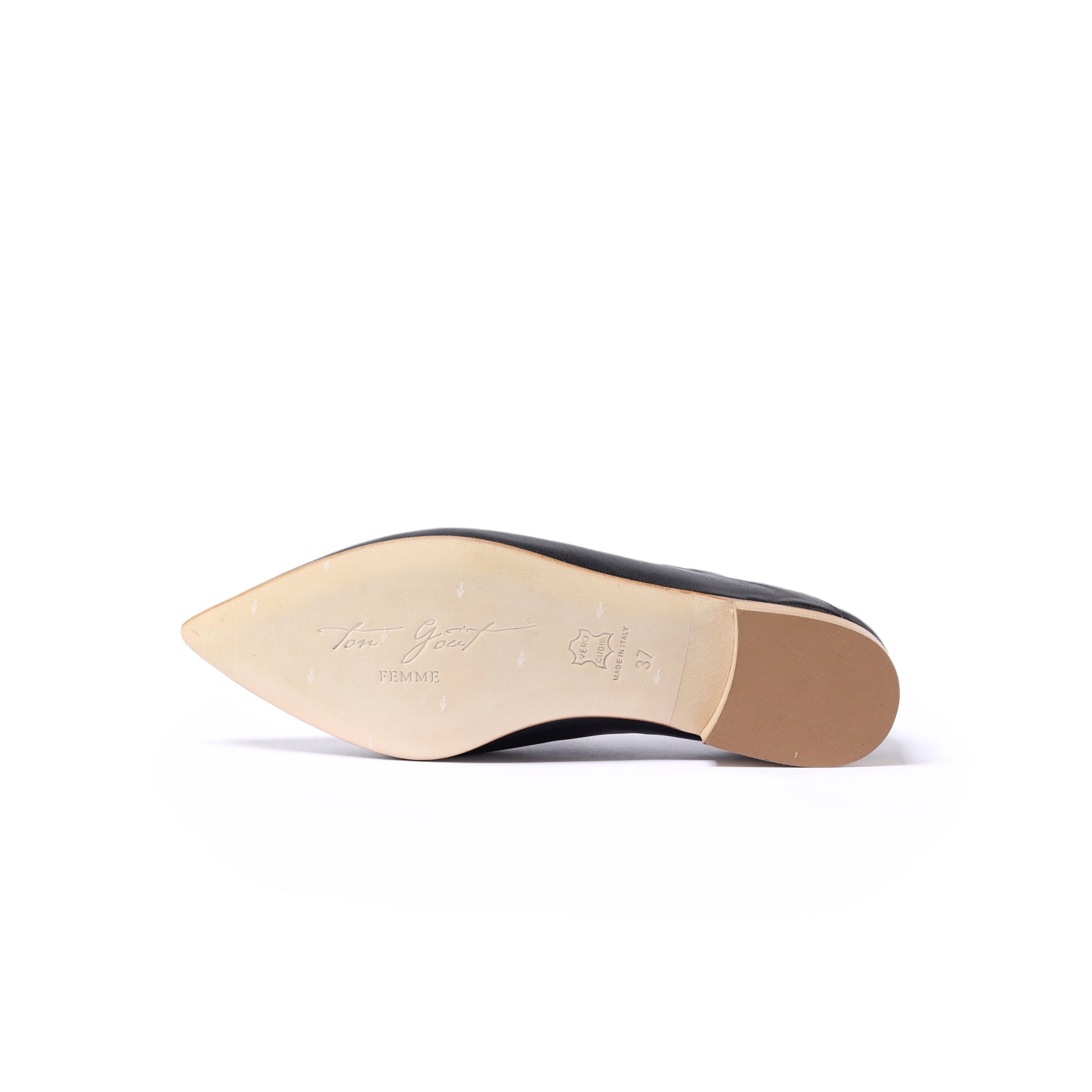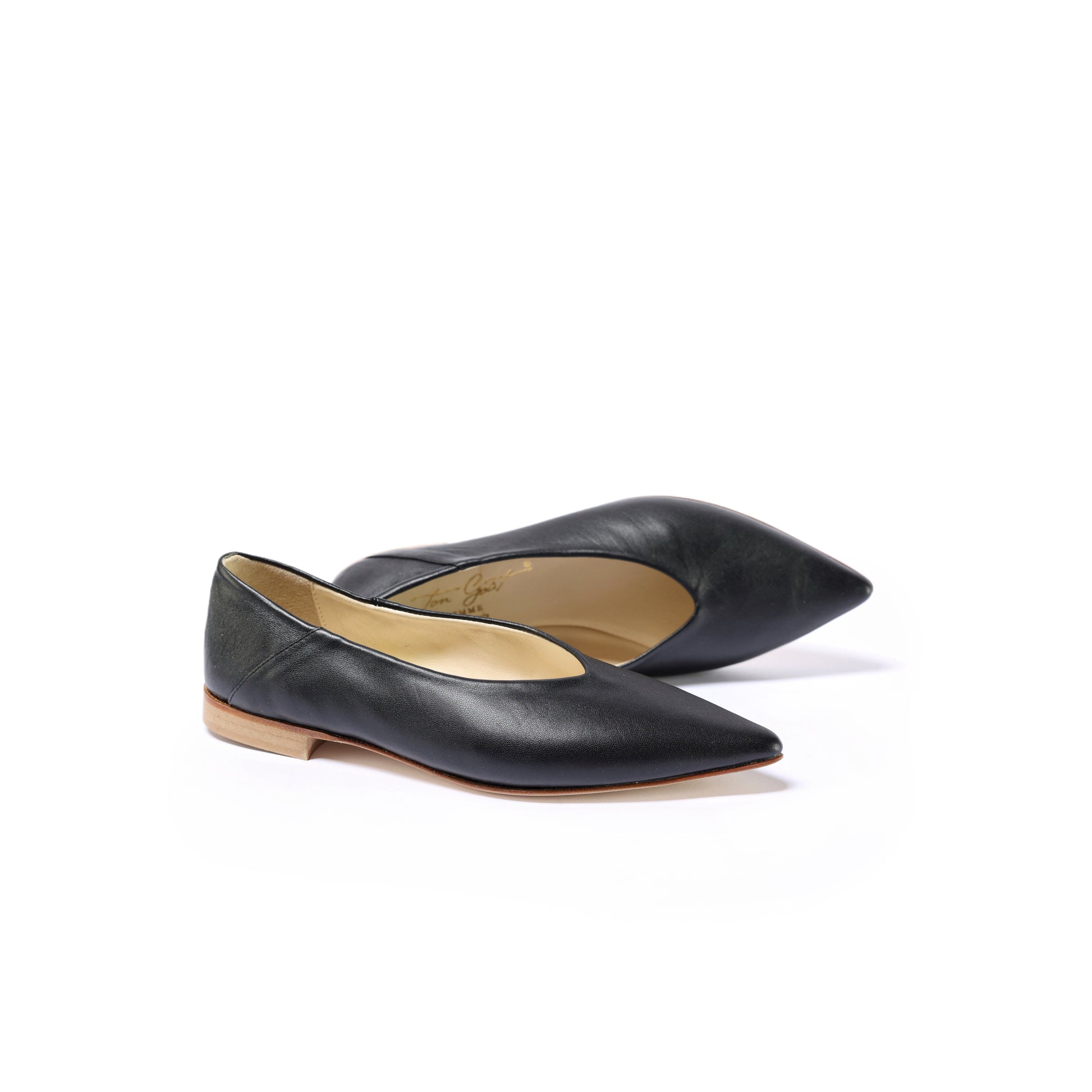 Ballerina a punta in morbida nappa con leggero tacchetto posteriore. Lavorazione a sacchetto in cui la fodera in morbida pelle viene cucita direttamente alla soletta ed avvolge direttamente il piede senza l'utilizzo di elementi rigidi.